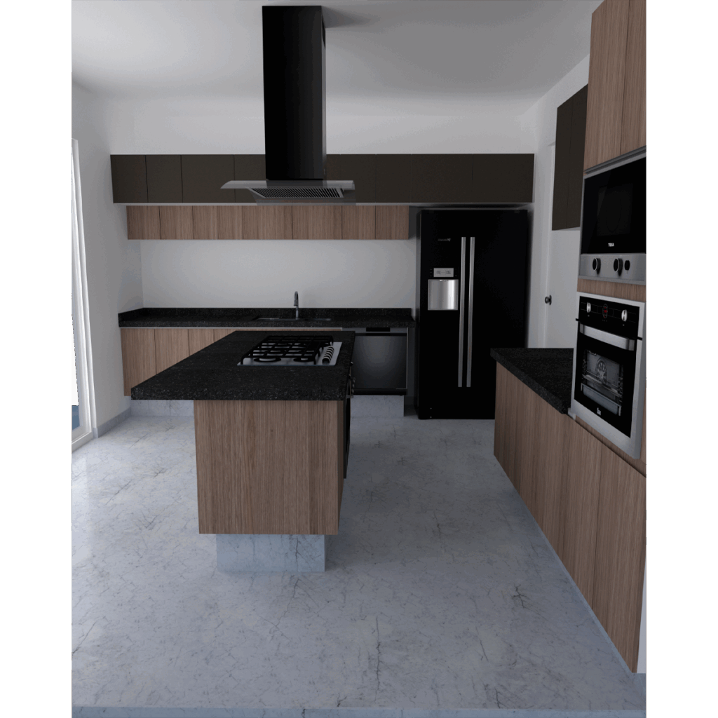 ID: 01390254 - Combinación de granito negro san gabriel y melamina cendra.