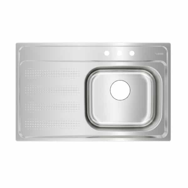 Tarja de acero inoxidable 18/10 de instalación empotrable con cubeta y escurridor izquierdo. Cuenta con tratamiento SilentSmart para menor ruido, instalación de un orificio y accesorios de fijación.